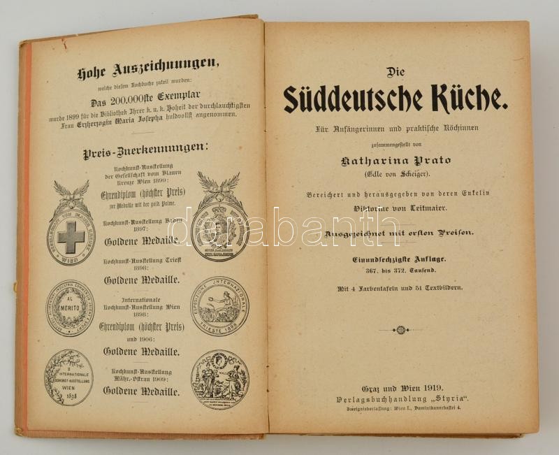 Katharina Prato: Die Süddeutsche Küche. Graz-Wien, 1919, Verlag-Buccha... https://www.darabanth.com/en/292-Online-auction/292.0/Books/Books-Gastronomy-and-Gardening~200014/Katharina-Prato-Die-Suddeutsche-Kuche-Graz-Wien-1919-Verlag-Bucchandlung-Styria-Kiadoi-felv~II1543026