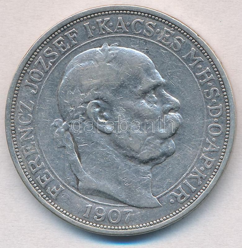 https://www.darabanth.com/en/292-Online-auction/292.0/Numismatics/Hungarian-coins-and-coins-with-Hungarian-mint-marks~400008/1907KB-5K-Ag-Ferenc-Jozsef-koronazasanak-40-evforduloja-T2-3-ph--Adamo-K71~II1547559