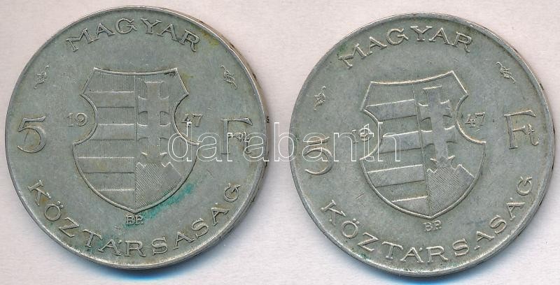 https://www.darabanth.com/en/292-Online-auction/292.0/Numismatics/Hungarian-coins-and-coins-with-Hungarian-mint-marks~400008/1947-5Ft-Ag-Kossuth-2x-T2-2-patina~II1548561