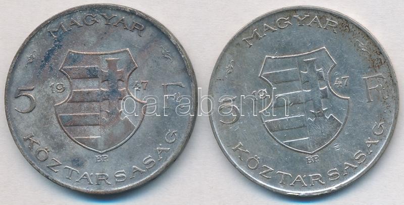 1947. 5Ft Ag "Kossuth" (2x) T:2-,3