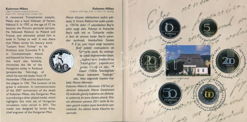 2011. 5Ft-200Ft (6xklf) forgalmi sor dísztokban, valamint 2011. "Mikes Kelemen" ezüstözött Cu-Ni-Zn emlékérem (29,2mm), "Magyarország pénzérméi" sorozat T:PP Adamo FO45.4