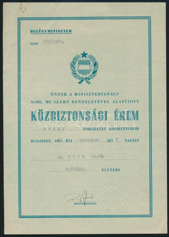 https://www.darabanth.com/en/292-Online-auction/292.0/Other-collectibles/Autographs~18/1961-Pap-Janos-1925-1994-belugyminiszter-alairasa-a-Kozbitonsagi-erem-arany-fokozatat-ado~II1547724