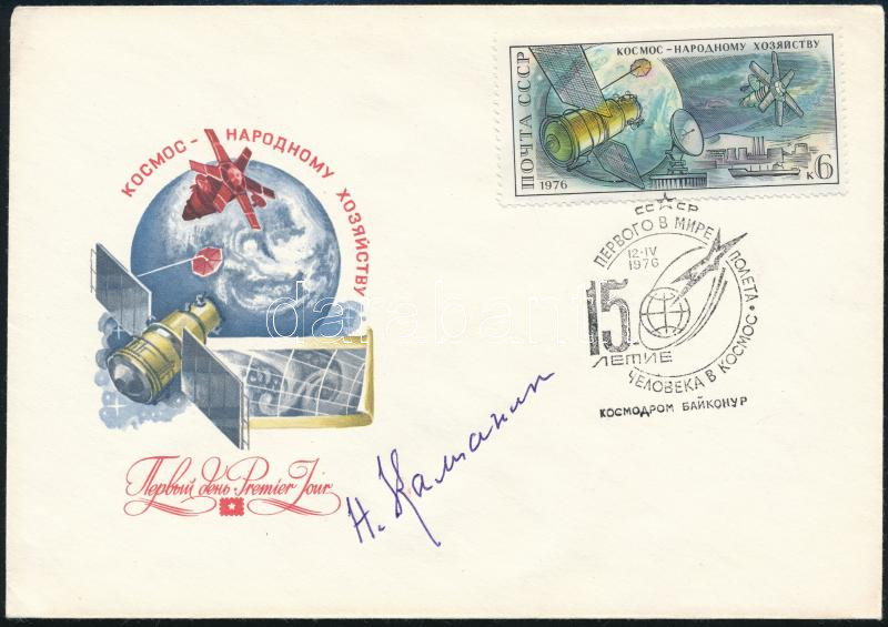 Description: Nyikolaj Kamanyin (1908-1982) szovjet pilóta, űrhajóskiképző aláírása emlékborítékon /