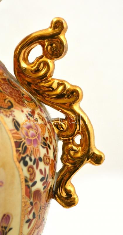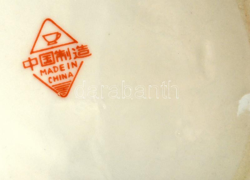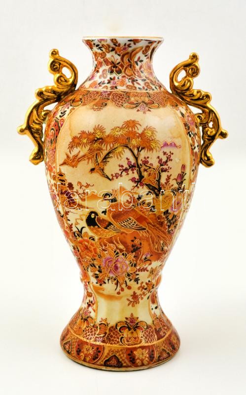 Jelzett kínai váza, részben kézzel festett, foltos, m:31 cm