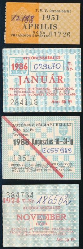 1951-1988 4 db autóbusz-, illetve útvonalbérlet