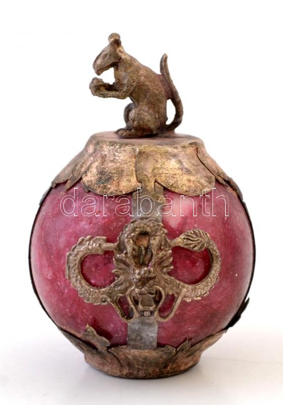 Rodonit gömb, mókusos fém foglalatban, m: 5cm