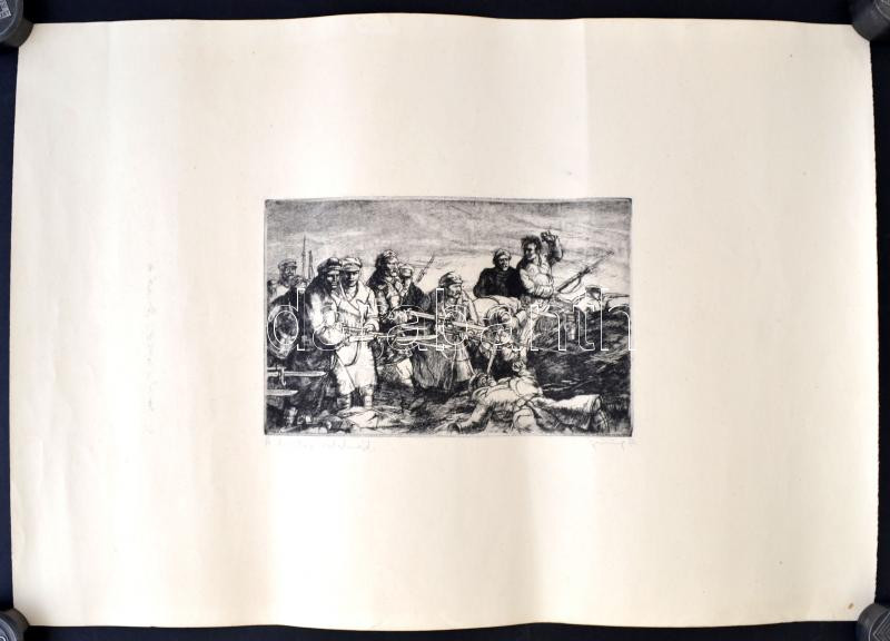 Görög Rezső (1930- ): A proletár hatalomért. Rézkarc, papír, jelzett, felcsavarva, 17×25 cm