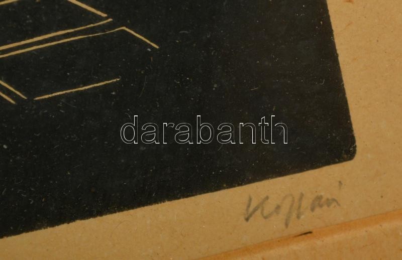 id. Koffán Károly (1909-1985):Halász bástya.Linó, papír, jelzett, üveg...