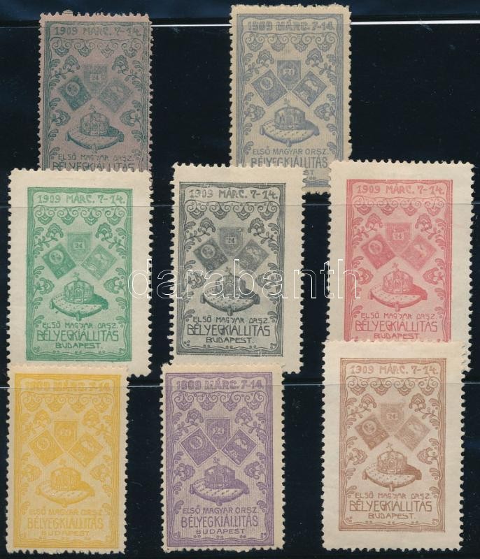 1909 Első Magyar Országos Bélyegkiállítás 8 db levélzáró