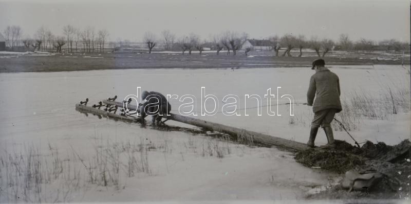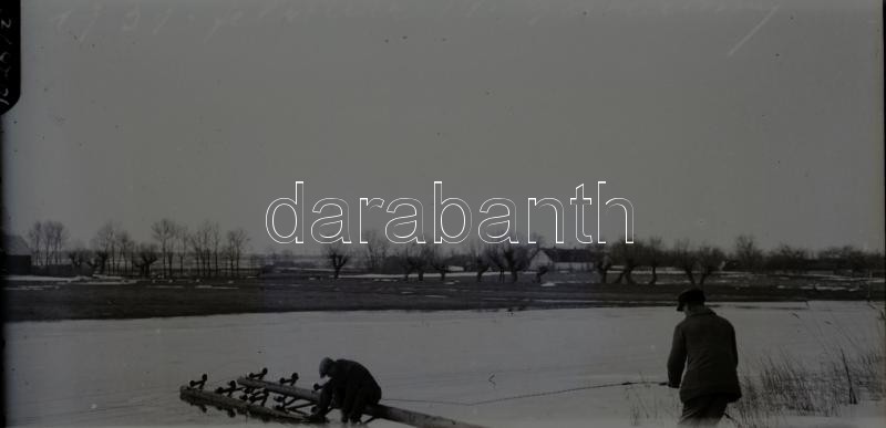 1931. február 14. Gárdony feliratú, vintage üveglemez negatív, Kerny István (1879-1963) hagyatékából, 9x12 cm