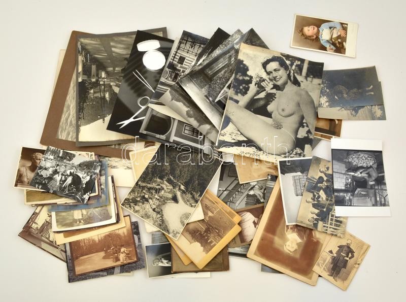 cca 1900-1980 Vegyes fotó tétel, különböző témákkal(baba, babakocsi, Köln, Olaszország, erotikus, fürdőélet, épületek, kirándulás, stb.), 62 db, 9,5x6,5 és 30x24 cm közötti méretekben