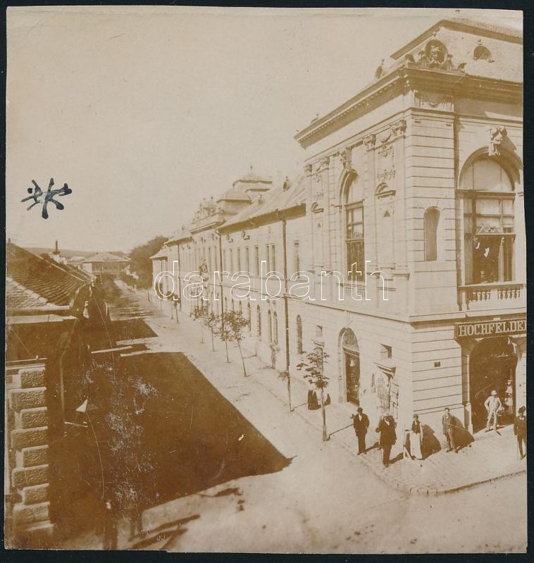 cca 1900 Losonc, Utcakép, Hochfelder üzlete, 9x8,5 cm / Lucenec, street, shop
