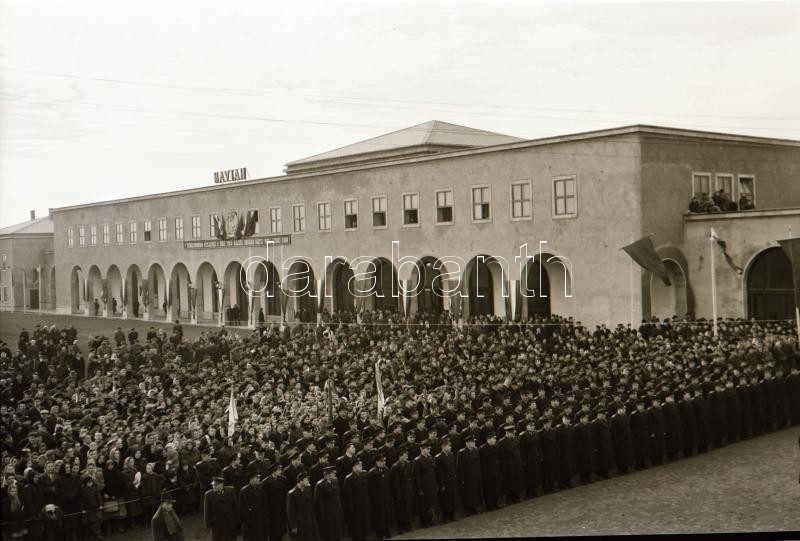 cca 1962 Hatvan, vasutasok eskütétele és avatása a hatvani vasútállomás előtt, szabadon felhasználható vintage negatív, 6x9 cm