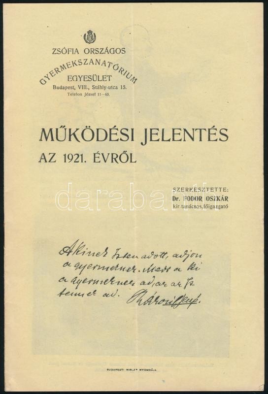 1921 Zsófia Országos Gyermekszanatórium Egyesület működési jelenetése ... https://www.darabanth.com/en/292-Online-auction/292.0/Other-collectibles/Printed-Materials~30/1921-Zsofia-Orszagos-Gyermekszanatorium-Egyesulet-mukodesi-jelenetese-az-1921-es-evrol-Sz~II1546010