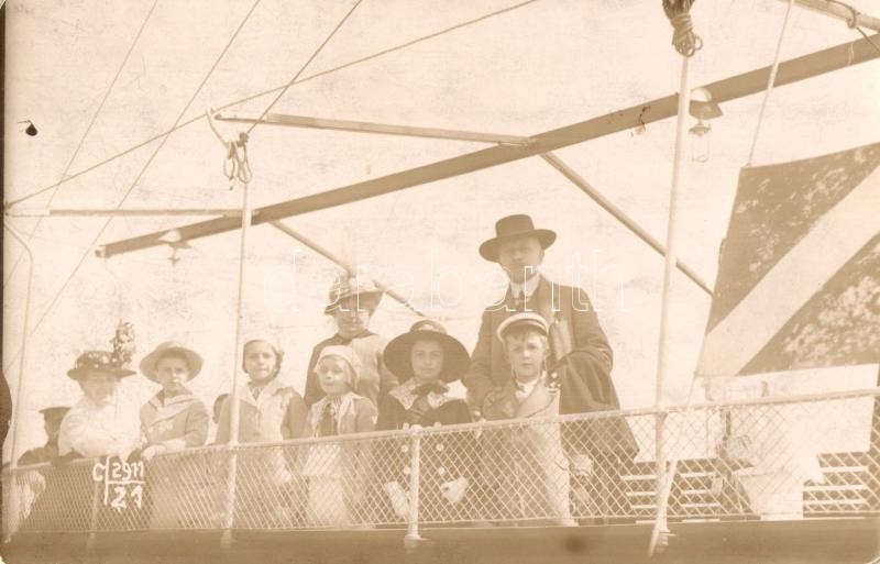 1914 Abbazia, molo, csoportkép hajókirándulásról / boat trip group, At...