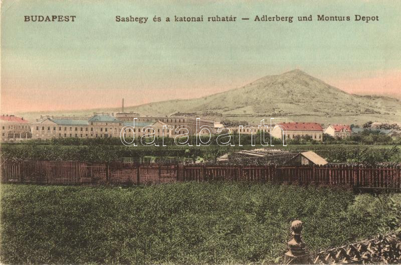 Budapest XI. Sashegy és a katonai ruhatár, Fellner Mór kiadása (EK)