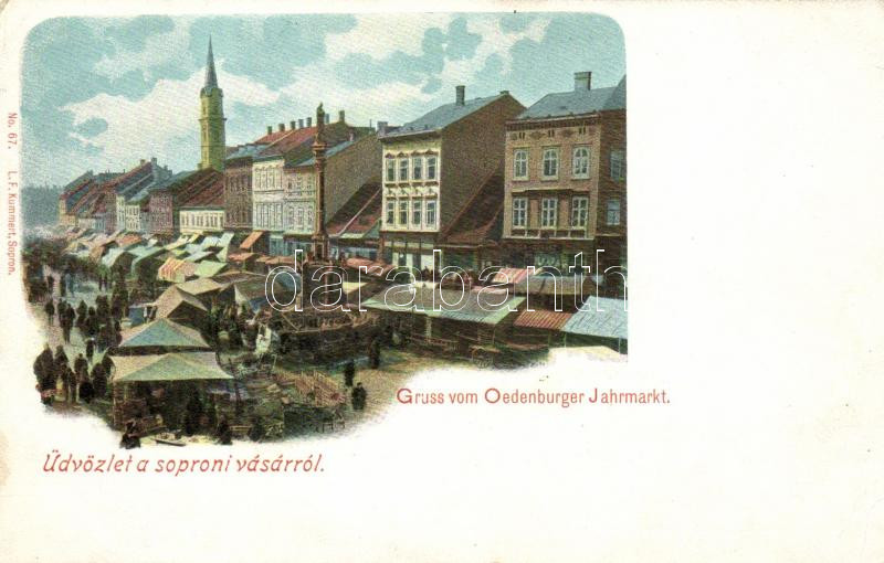 Sopron, Oedenburg; Gruss vom Oedenburger Jahrmarkt / Vásár, piac, L. F. Kummert kiadása (EK)