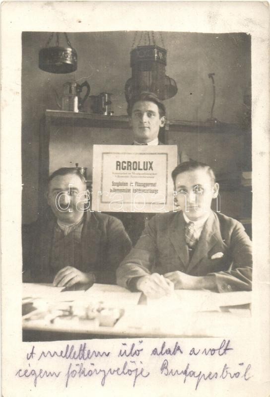 Szeghalom-Füzesgyarmat, Acrolux 'Községeket és mezÅ‘gazdaságokat villamosÃtó részvénytársaság' Szeghalom és Füvesgyarmat villamosművek épÃtésvezetÅ‘sége, csoportkép, belsÅ‘, photo (EK)
