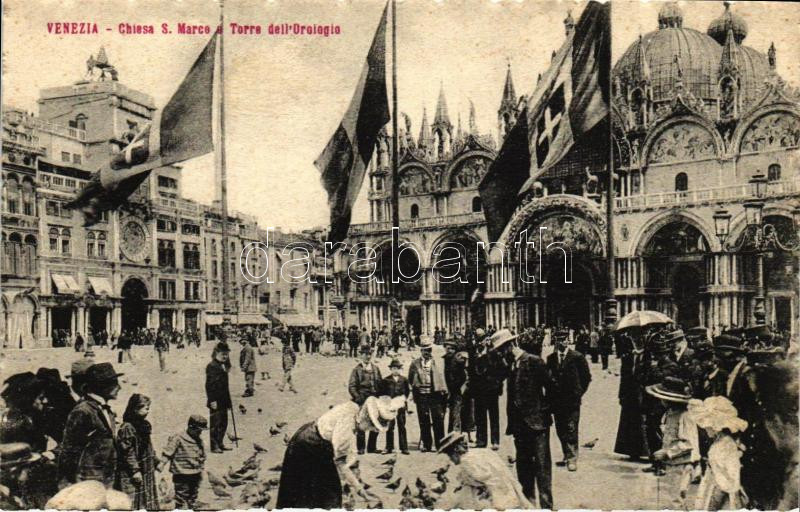 Venice, Venezia; Chiesa S. Marco, Torre dell'Orologio / church, clock toert, pigeon feeding crowd