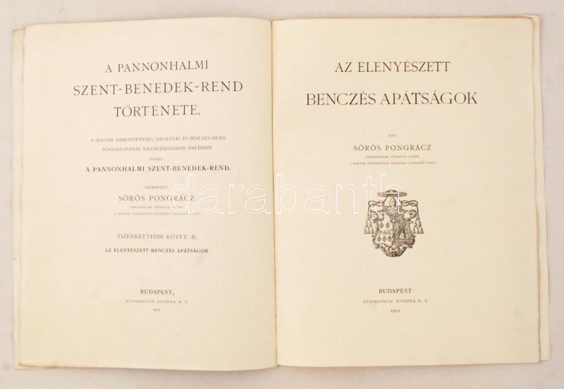 A Pannonhalmi Szent-Benedek-Rend története. A magyar kereszténység, királyság és Bencés-rend fönnállásának kilencszázados emlékére kiadja a pannonhalmi Szent-Benedek-rend. Szerkeszti Erdélyi László dr. I- XII. kötet (14 kötetben). A kötetek közül csak a 7. kötet (A zalavári apátság története) került bekötésre, a további kötetek kötés nélküli körülvágatlan, félívenként összerakott példányok. Ennek ellenére komplett, hiánytalan sorozat, a táblák és a mellékletek megvannak. Néhol kisebb ázásnyomok előfordulnak, de összességében jó állapotban.