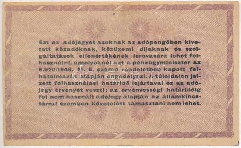 1946. 100.000AP vízjeles papíron, sorszámozott, függőleges papírránccal T:III ly.