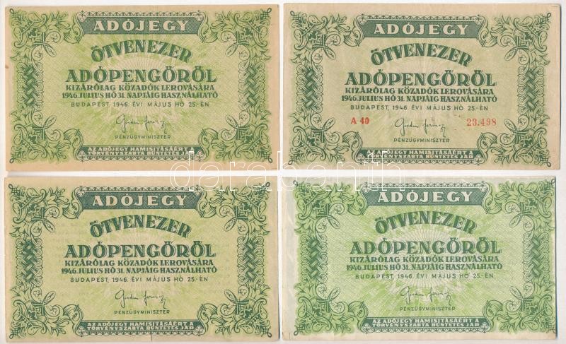1946. 50.000AP (4x) közte egy sorszámos, mindegyik elő- vagy hátlapi n...