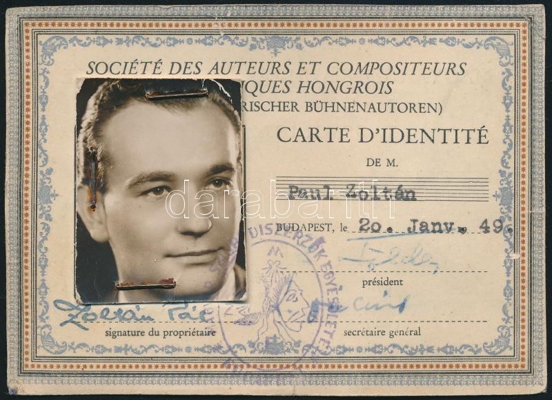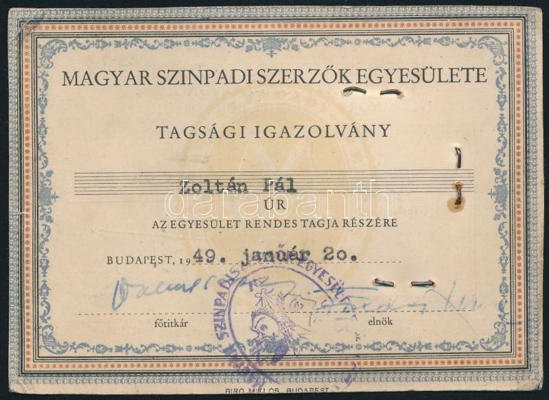 https://www.darabanth.com/en/293-Online-auction/293.0/Other-collectibles/Documents~200017/1949-a-Magyar-Szinpadi-Szerzok-Egyesulete-fenykepes-tagsagi-igazolvanya-Zoltan-Pal-1921-19~II1549416