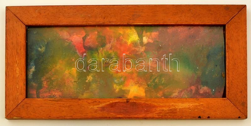 Vilhelm jelzéssel: Kompozició. Olaj, karton, üvegezett keretben, 12×30 cm