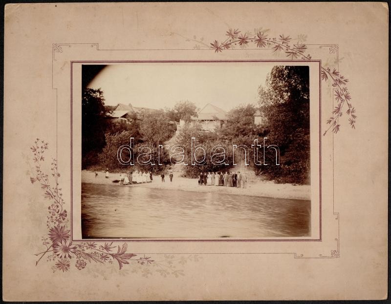 cca 1900 Duna-parti életkép, kartonra kasírozott fotó, 13x16,5 cm, karton 22x28 cm