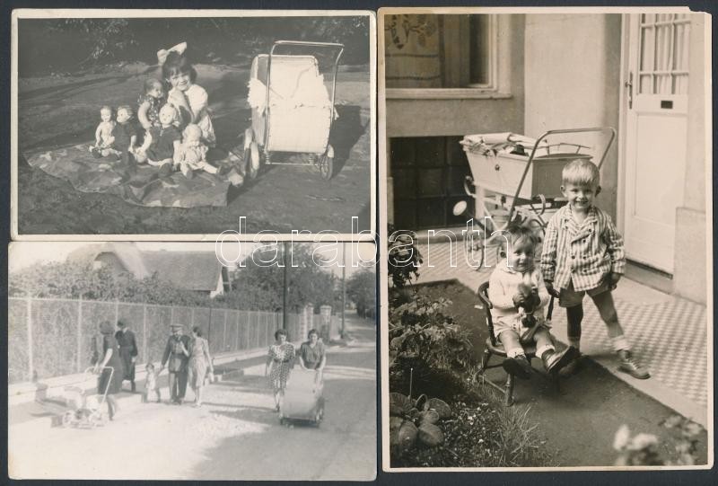 cca 1920-1960 10 db régi babakocsis fotó, 17x12 cm és 4x6 cm közötti m...