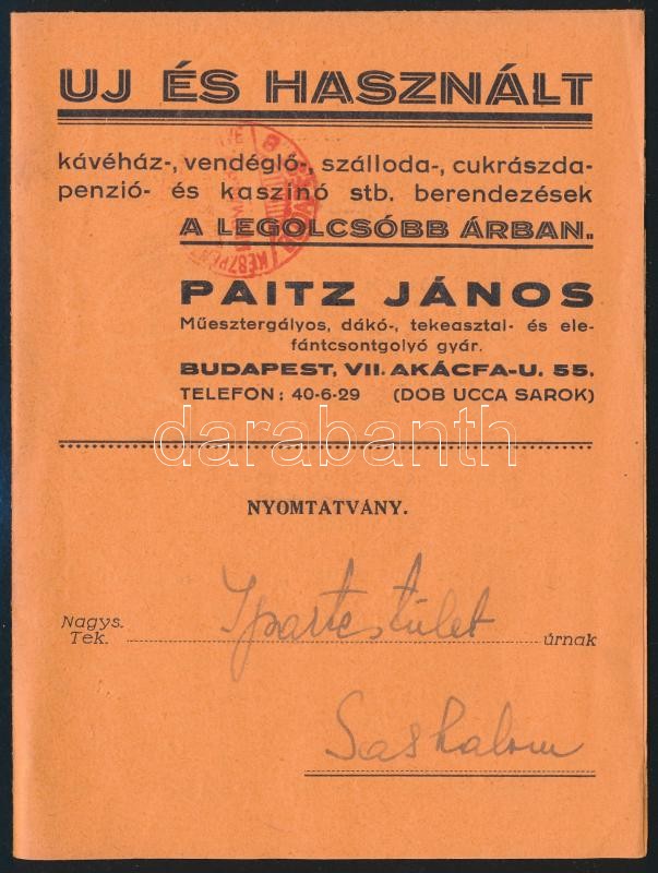 https://www.darabanth.com/en/293-Online-auction/293.0/Other-collectibles/Printed-Materials~200041/cca-1935-Budapest--Paitz-Janos-muesztergalyos-dako-tekeasztal-es-elefantcsontgolyo-gyar~II1550960