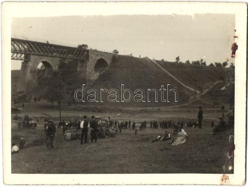 1931 Biatorbágy, Torbágy; Felrobbantott vasúti híd Matuska Szilveszter merénylete után, viadukt, mozdony maradványok, photo (lyukak / holes)