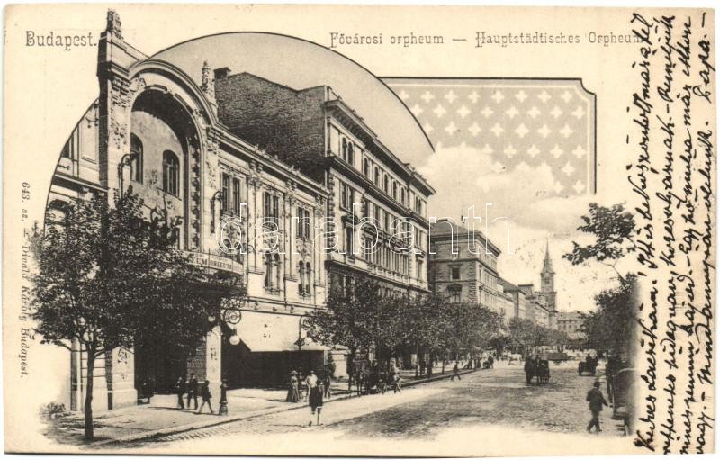 Budapest VI. Nagymező utca 17. Fővárosi Orfeum, Art Nouveau, Divald Károly 643. sz. (EK)