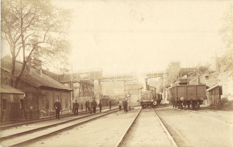 Pécs-bányatelep, András akna, vasútállomás, vasutasok, gőzmozdony, pho...