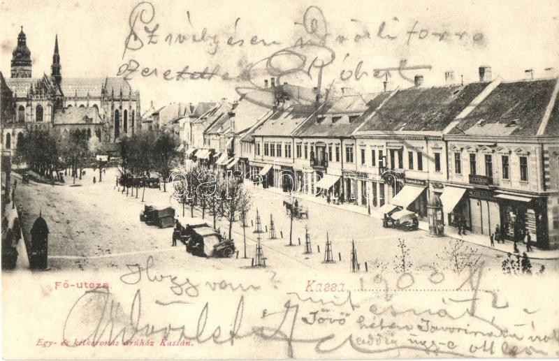 Kassa, Kosice; Fő utca, piac, üzletek / main street, market, shops (vágott / cut)