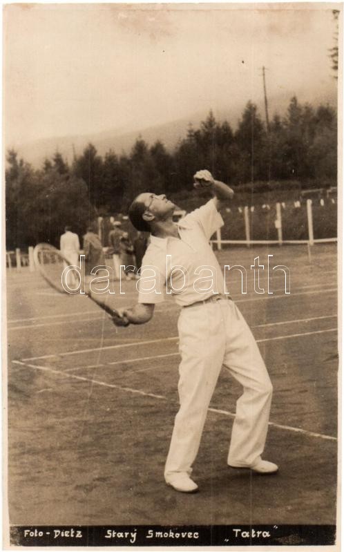 Ótátrafüred, Stary Smokovec, Alt-Schmecks; Szerváló teniszező / tennis player serving, Foto Dietz photo (ragasztónyomok / glue marks)