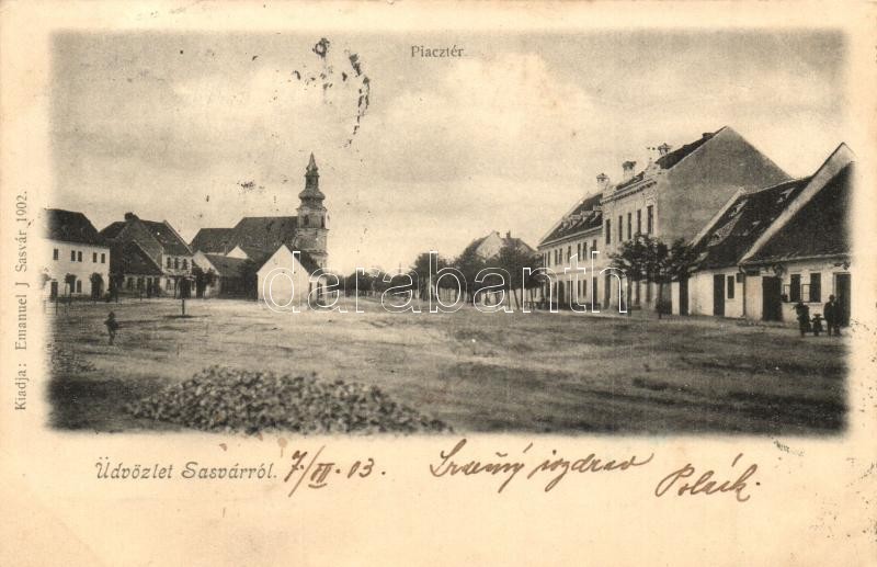 Sasvár, Sassin, Sastin; Piac tér üzletekkel. Emanuel J. kiadása / mark...