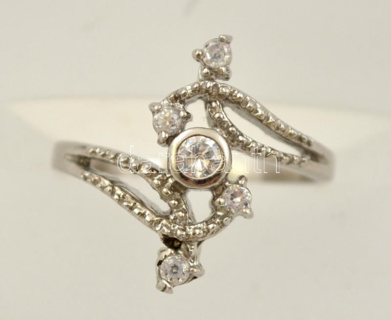 Ezüst(Ag) indamintás apró szintetikus kövekkel kirakott gyűrű, jelzett, méret: 54, bruttó: 2,7 g