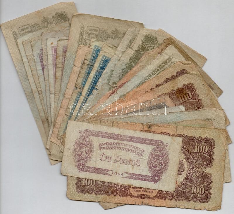 https://www.darabanth.com/en/294-Online-auction/294.0/Numismatics/Hungarian-Banknotes~400007/1944-1P-100P-30x-A-Voros-Hadsereg-Parancsnoksaga-foleg-gyenge-tartasu-bankjegyek-TIII-I~II1560092