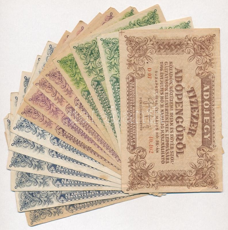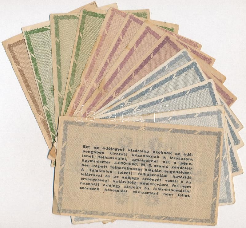 1946. 10.000AP + 1946. 50.000AP (3x) közte egy sorszámos + 100.000AP (5x) közte három sorszámos + 1946. 500.000AP (6x) közte egy sorszámos T:III,III-