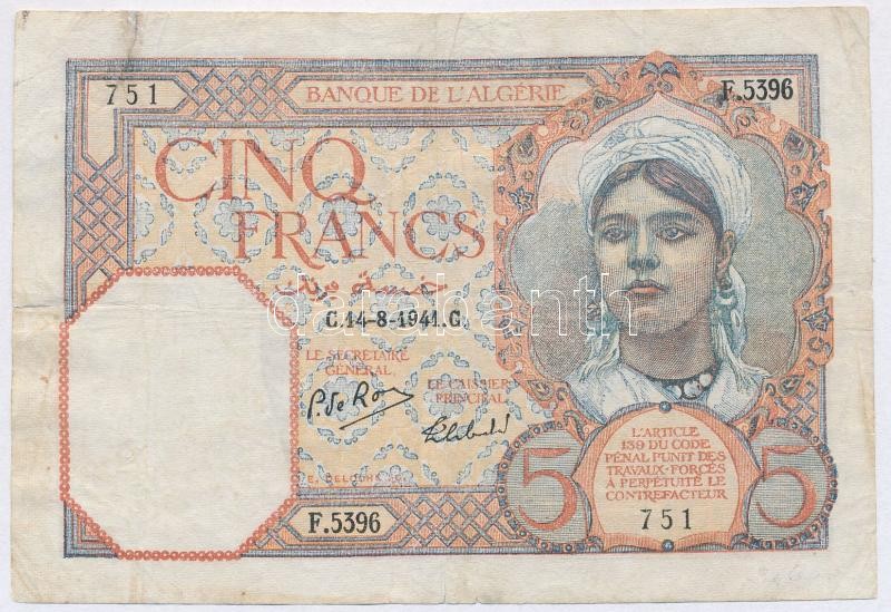 https://www.darabanth.com/en/294-Online-auction/294.0/Numismatics/Worldwide-banknotes~400012/Algeria-1941-5Fr-TIII-ragasztas--Algeria1941-5-Francs-CVG-sticked--Krause-77~II1558217