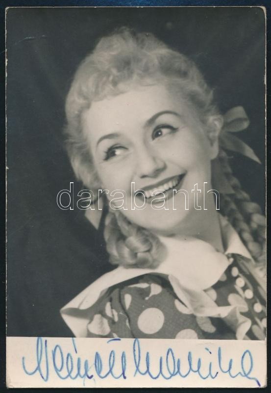 Németh Marika (1925-1996) színésznő aláírása az őt ábrázoló fotón
