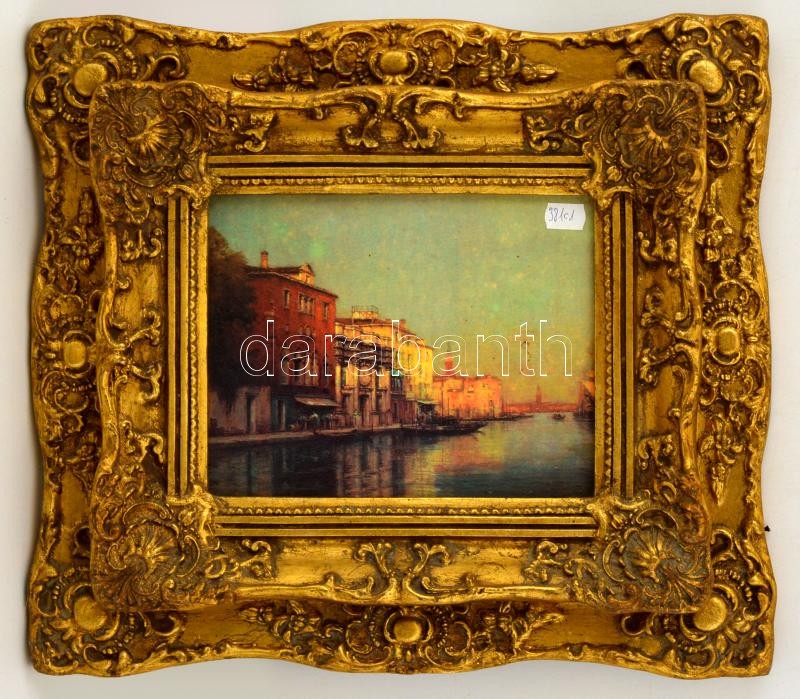 Díszes blondel keret, benne nyomattal, belső méret: 18,5×23 cm, külső ...