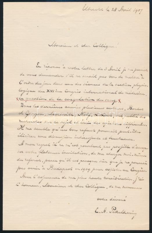 1907 Utrecht, Ferdinand Klughoz professzorhoz címzett levél