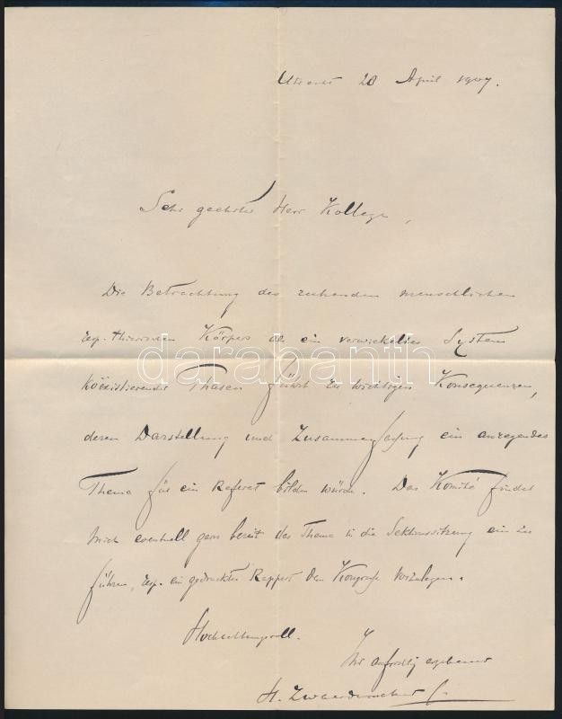 1907 Utrecht, Ferdinand Klughoz professzorhoz címzett levél