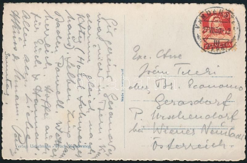 1930 Teleki Pál későbbi miniszterelnök saját kézzel írt sorai családtagjának Svájcból küldött levelezőlapon