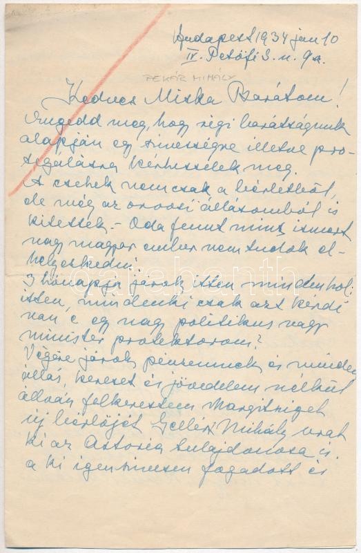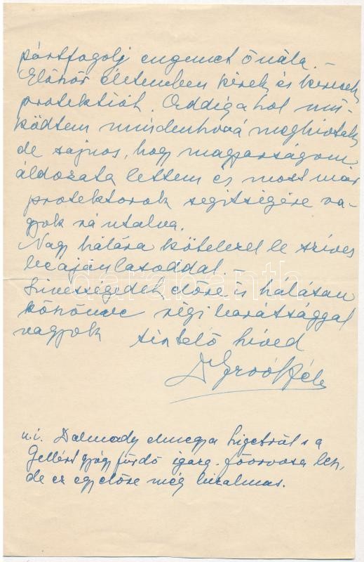 1934 Bp., Dr. Groó Béla, a Margitsziget gyógyfürdő és Szanatórium igazgató főorvosának levele Pekár Mihály (1871-1942) orvoshoz