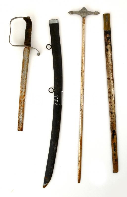 2 db régi kard, megviselt állapotban: az egyik markolata hiányzik, a m...