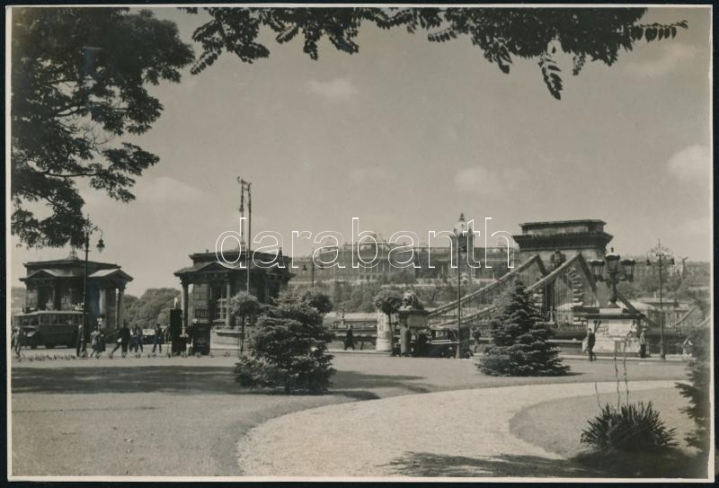 cca 1938 Budapest, 5-ös autóbusz a Lánchíd pesti hídfőjénél, 11,5x17 c...