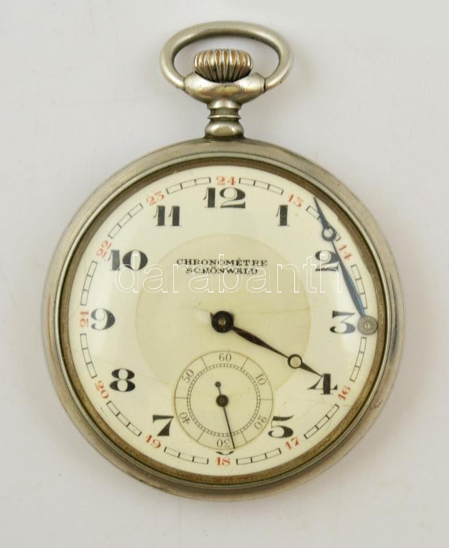 Chronometer Schönwald jelzett számlapú zsebóra, működő szerkezettel, r... https://www.darabanth.com/en/294-Online-auction/294.0/Other-collectibles/Watches~200009/Chronometer-Schonwald-jelzett-szamlapu-zsebora-mukodo-szerkezettel-repedt-szamlappal-es-e~II1559019